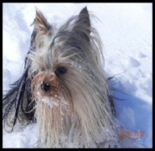 Rain is a Yorkie out of Envy and Ch Toybox,s Mocha Latte who was shown at Westminster. Rain is our resident “Old Girl”, she is retired and loves to be held and cuddled.