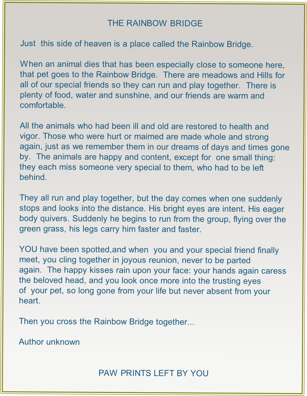 Run Free Over the Rainbow Bridge Sweet Envy.